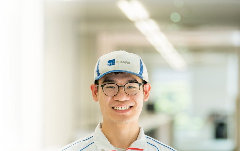 大学院の時、香港で当社の説明会に参加し、日本で工場見学、面接をおこないました。その時に、立派な工場と綺麗な最新設備を見て、荏原製作所はいつも高みを目指し挑戦し続けることに感心しました。このような環境で、私も新しいことに前向きにチャレンジすれば、自分がもっとよく成長できると思い、荏原製作所を選びました。