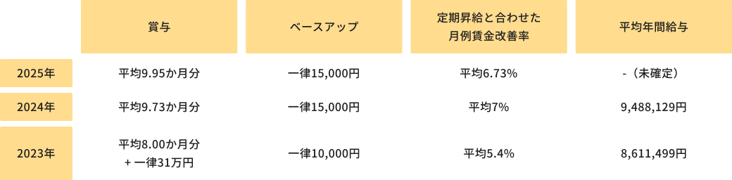 ※賞与・月例賃金改善率・平均年間給与は全社平均であり、事業部門/各個人の評価によって異なります